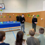 Begleitet wurden wir von ganz tollen Scouts der 12. Klasse. Sie waren richtig nett zu uns, haben uns alles gezeigt und waren immer für uns da. Danach ging es in verschiedene Workshops. Die waren super abwechslungsreich! Im Englisch-Workshop haben wir ein Lied gelernt, das so viel Spaß gemacht hat, dass wir gar nicht mehr aufhören wollten zu singen und zu tanzen. Auch die Ethik- und Theaterstunden waren spannend – besonders das Schwarzlichttheater! Das fanden wirklich alle Kinder super, weil es so bunt und geheimnisvoll aussah.