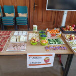Schon am Morgen erwartete uns ein leckeres, gesundes Frühstück. Wir konnten so viele Sachen probieren: frisches Obst, knackiges Gemüse, selbstgemachte Pausenbrote und Snacks. Ein großes Lob an alle, die das Frühstück vorbereitet haben – wir fanden es mega lecker!