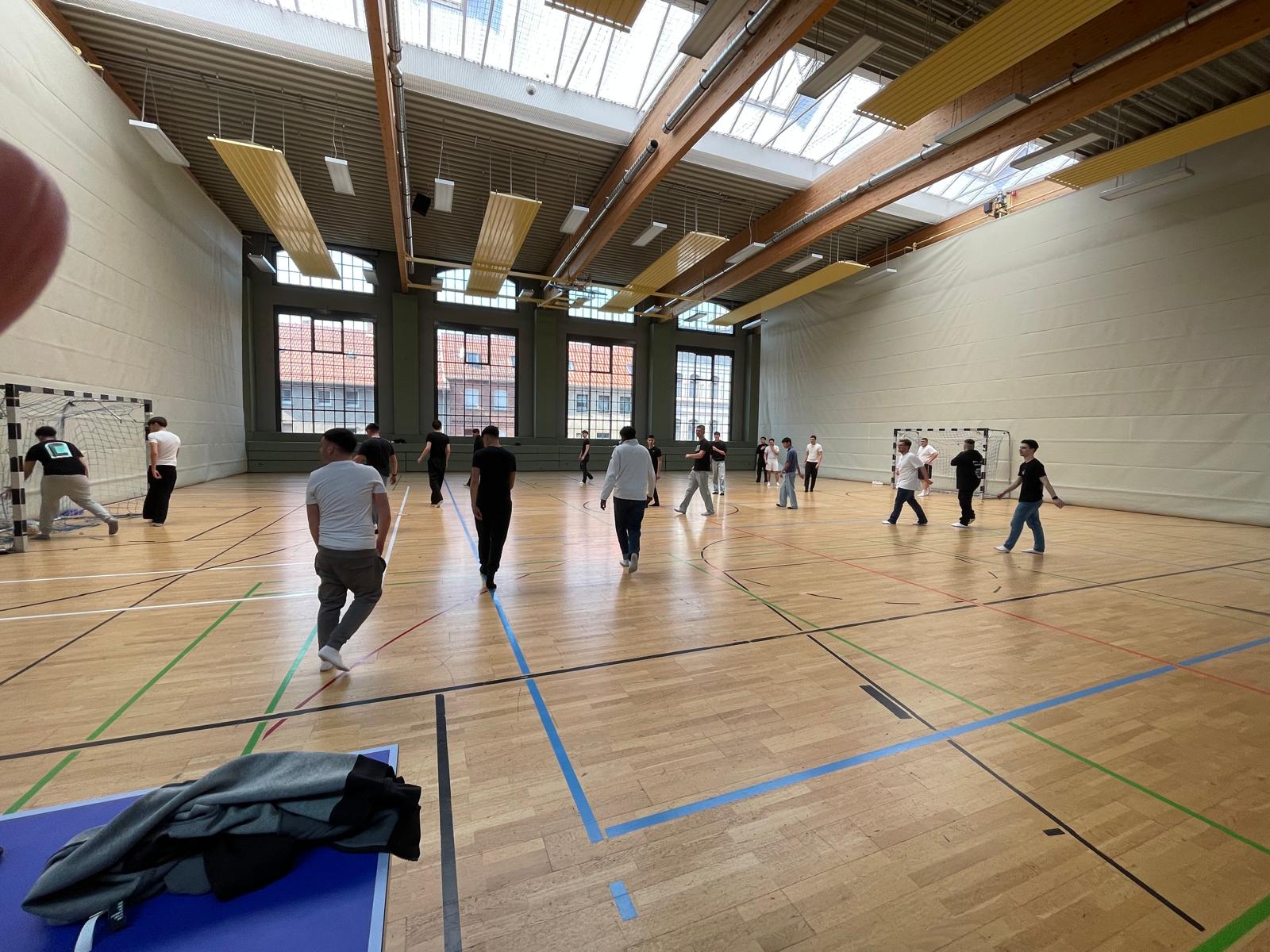 Absolute Spitzenleistung. Spontan geht immer am besten Nach der Stärkung kam Izzetin und Leon aus der BFST25 die Idee: „Warum nicht nochmal in die Sporthalle?“ Gesagt, getan. Erst Basketball, dann Fußball – und am Ende standen so viele Spieler auf dem Feld, dass keiner mehr wusste, wer eigentlich in welchem Team spielt. Aber genau das machte den Moment aus.